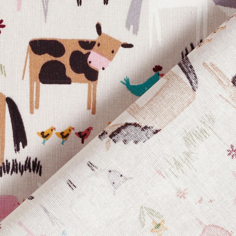 Cotton Cretonne farmyard animals – almond