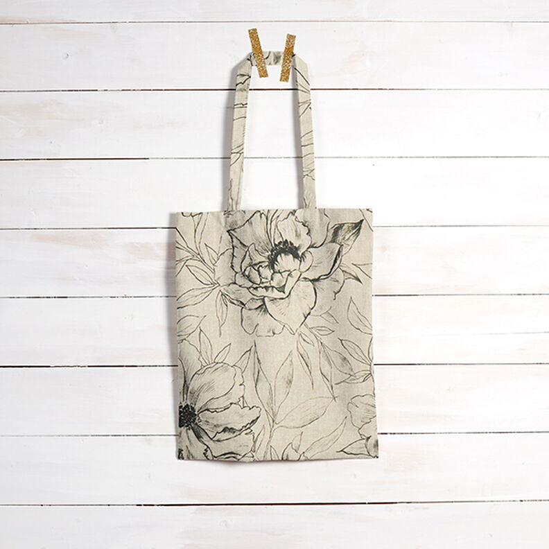 Decor Fabric Half Panama Sketched Flowers – anemone/black