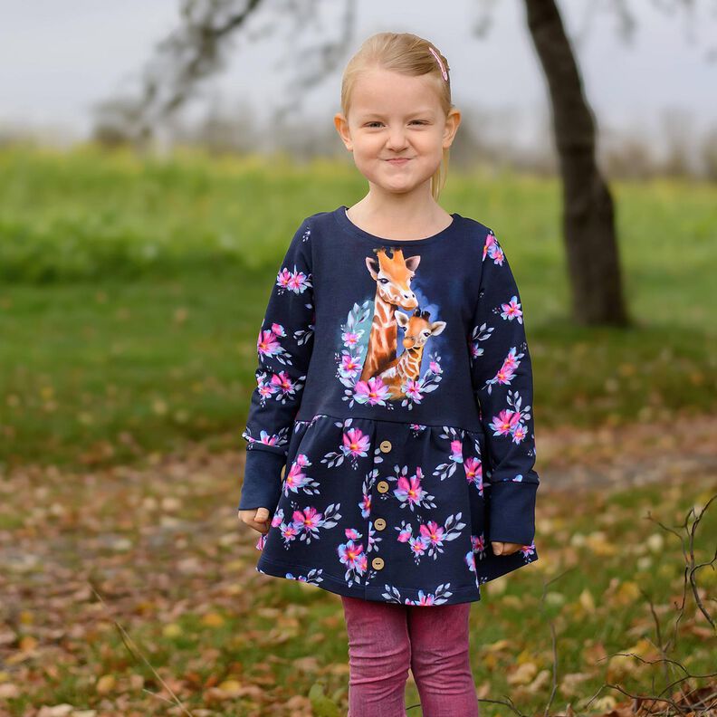French Terry giraffe family Panel | Glitzerpüppi – midnight blue