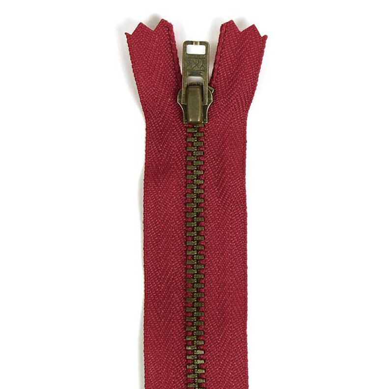 Non-divisible zip with metal teeth (antique finish, 3mm), for trousers, skirts and dresses, as well as for pockets and sleeves. Premium quality by YKK.